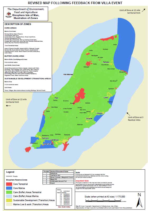 Biosphere zones in the Isle of Man at time of becoming a UNESCO Biosphere in 2016.