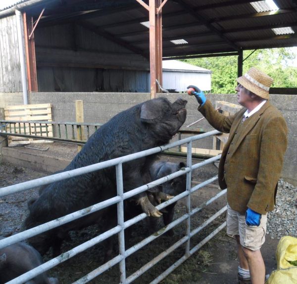 He mixes it with fruit and the mash left over from the beer brewing process, sourced from a local brewer, and feeds it to the pigs, then nature takes its course.