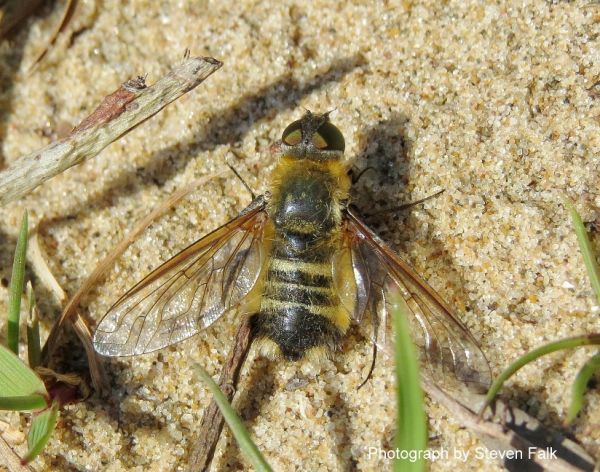 The nationally scarce bee fly Villa modesta was seen in the dunes to the west of the Point of Ayre lighthouse. The fly larvae are said to be parasitoids of ground dwelling moth caterpillars and pupae but also it is possible that it is a parasitoid in the nests of the Coast leaf-cutter bee, Megachile maritima.
